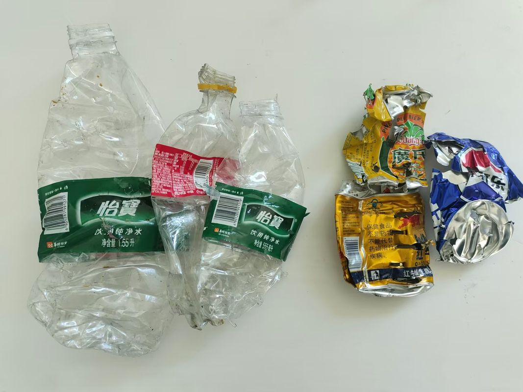 2Jenis bahan: botol PET plastik, kaleng logam, kaca,